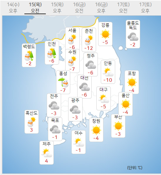 12월 15일 날씨예보