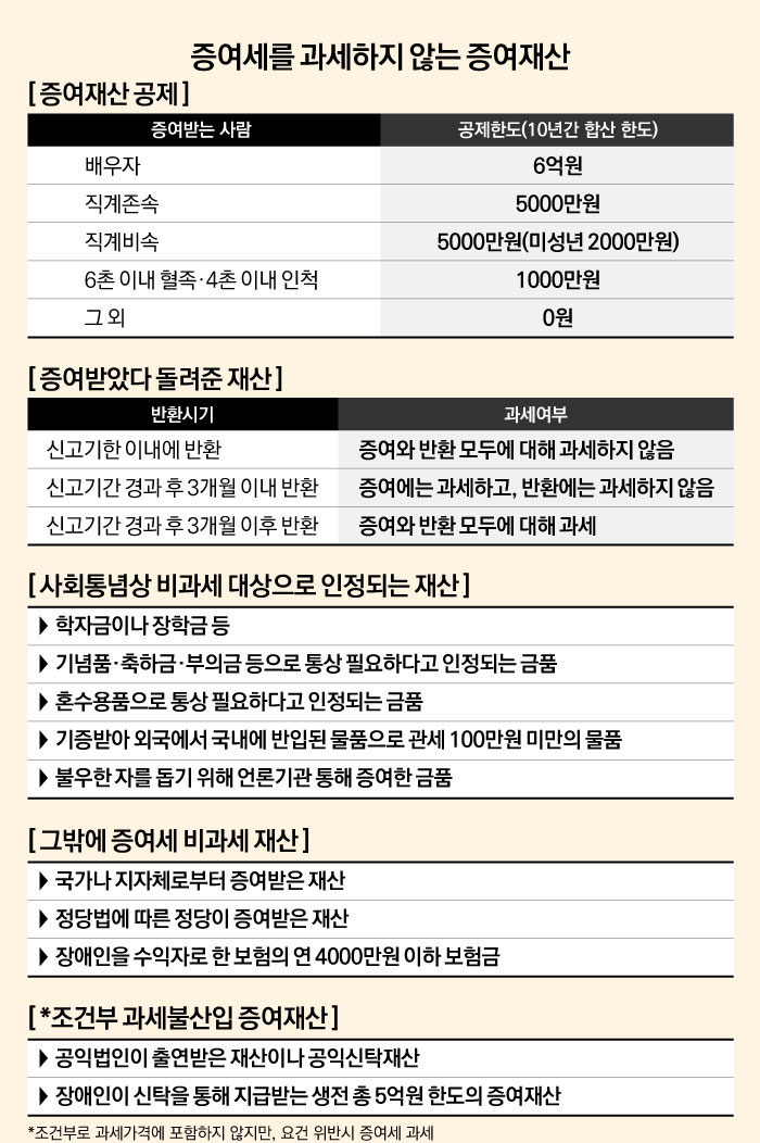 증여세 면제 한도액 항목
